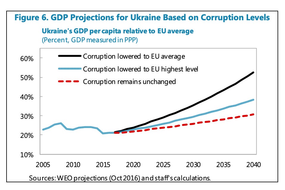The overriding issue for both the IMF and the EU is corruption. The IMF has even prepared quantitative assessments of corruptions’s impact on Ukraine’s economy.