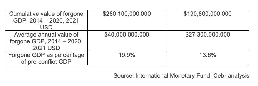 Today, the question that is more pertinent is economics not the geopolitics of the 2014-5 bailouts. How badly has Russian aggression since 2014 damaged Ukraine’s growth? After all Ukrainians might well want to claim reparations.