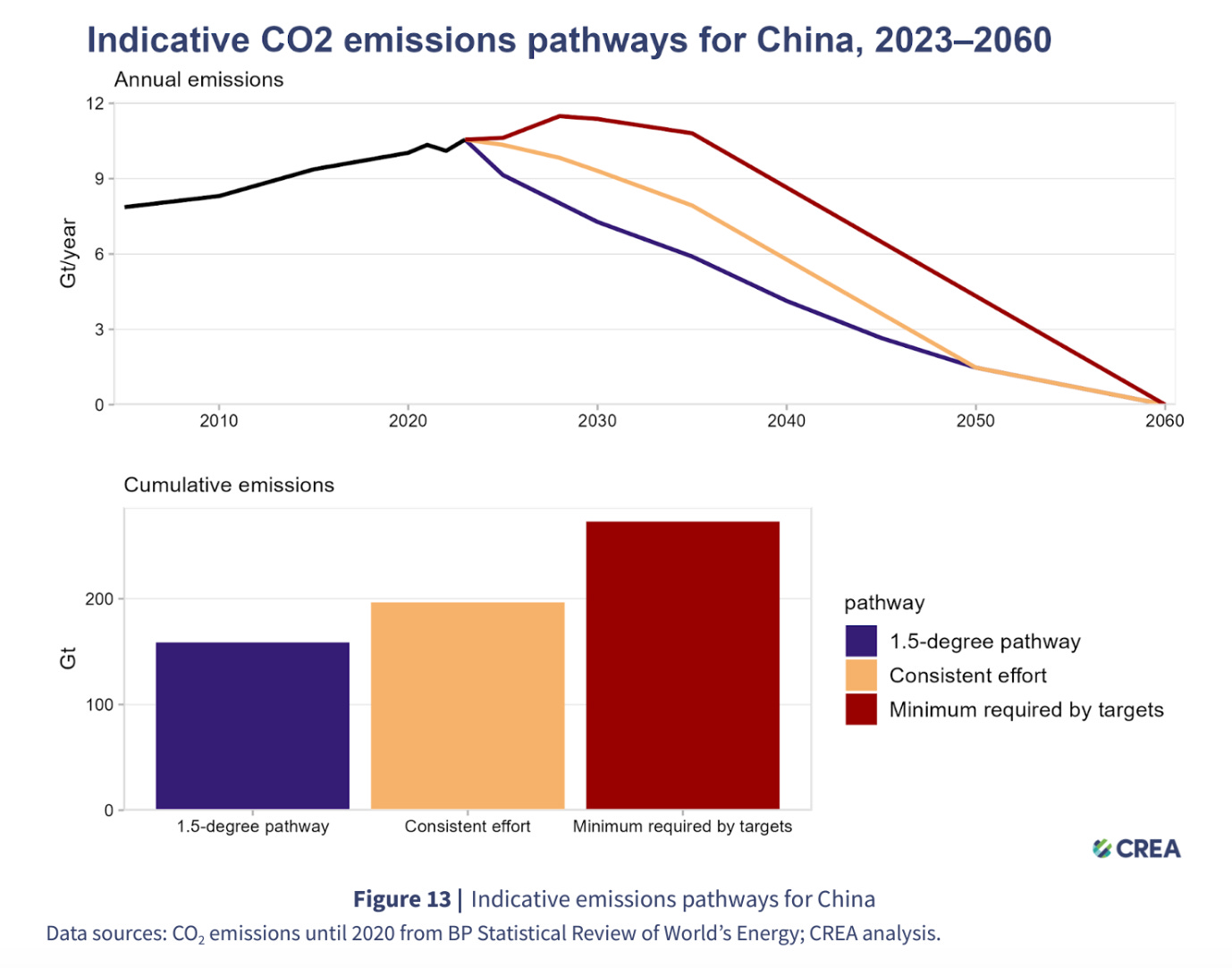 The range of cumulative emissions that is compatible with China’s current climate commitment is alarmingly large. As the CREA report spells it out.
