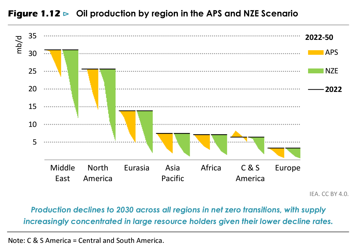If those factors do not intrude, the IEA’s net zero trajectory foresees a 80 percent contraction in US and Eurasian oil production, compared to a 50-60 percent fall in the Middle East. Even in the Middle East, if market forces prevail, it will be only the very strongest producers - the Saudis, Emiratis and Qataris that survive.