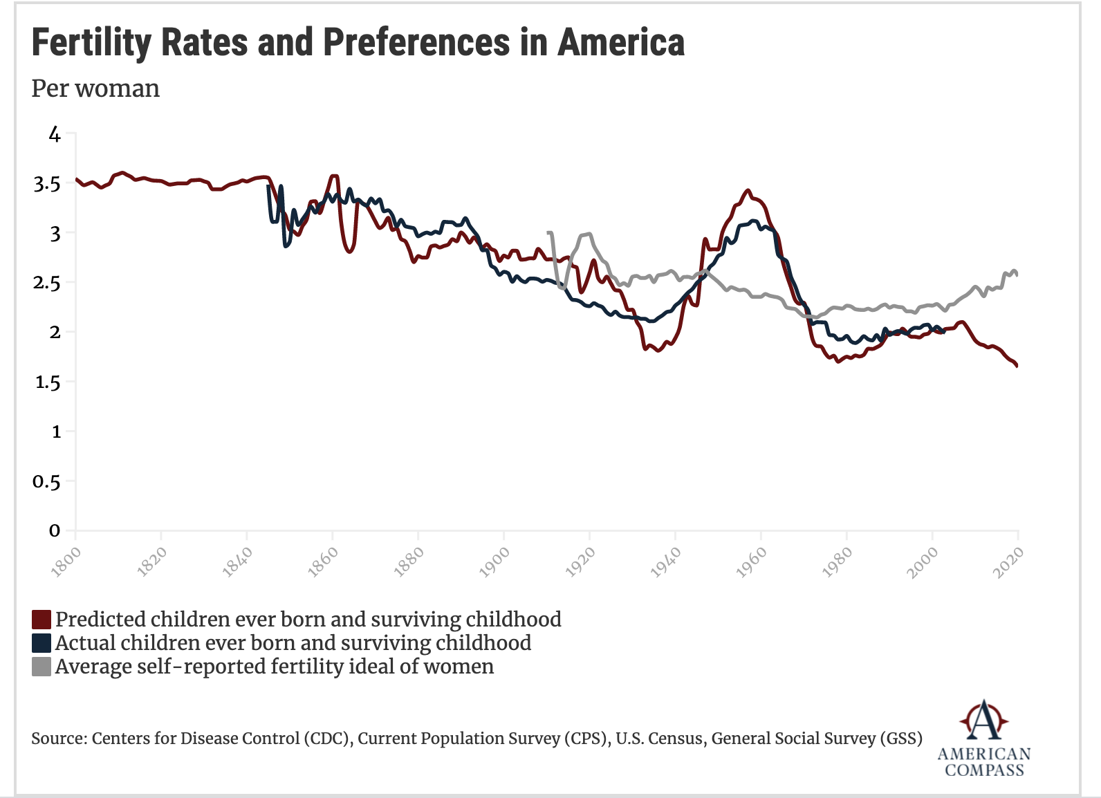 Little wonder also, that from the early 2000s there has been an increasingly large gap between the number of children American women give birth to and the number they would, ideally, like to have.