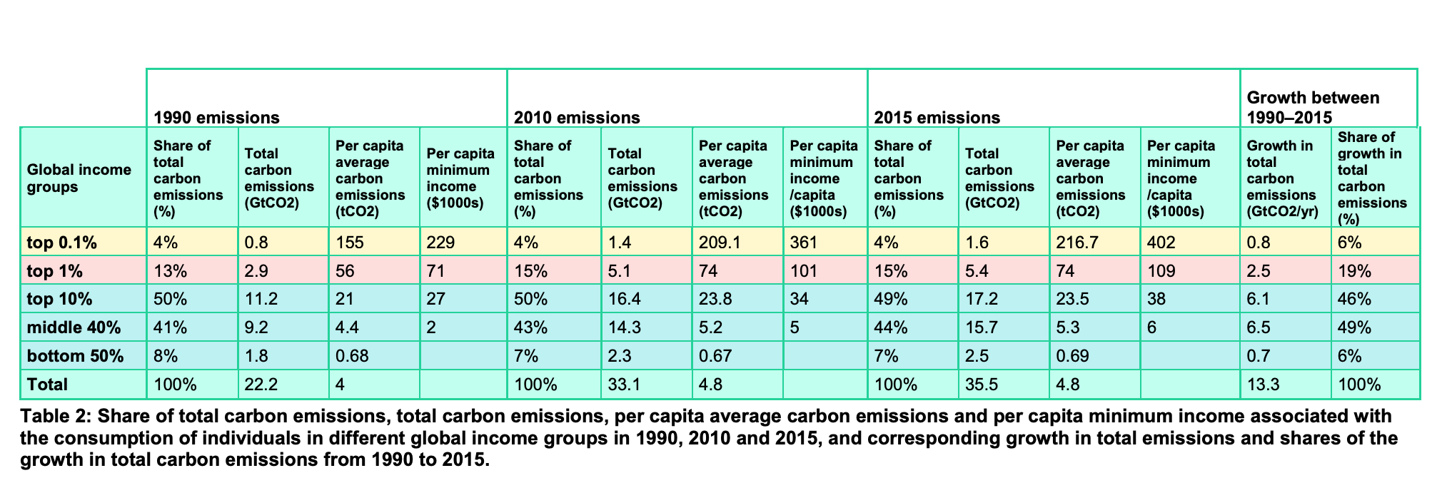 As Oxfam emphasizes, the idea that "global population growth" is a significant contributor to the climate crisis is utterly tendentious. Population growth concentrated in sub Saharan Africa and latin America or amongst the poor in Asia has a minimal impact on the global emissions balance. Nor would it make much difference if the bottom billion were to be provided with basic electricity connections, as is demanded by the Sustainable Development Goals. It is the volume of energy consumption that matters and that is dominated by the top half of the income distribution. It is not the development aspirations of the global poor that are driving the climate crisis, but the relentless increase in the already excessive consumption of the more affluent half of the world's population and particularly that of the top 10 and top 1 percent.