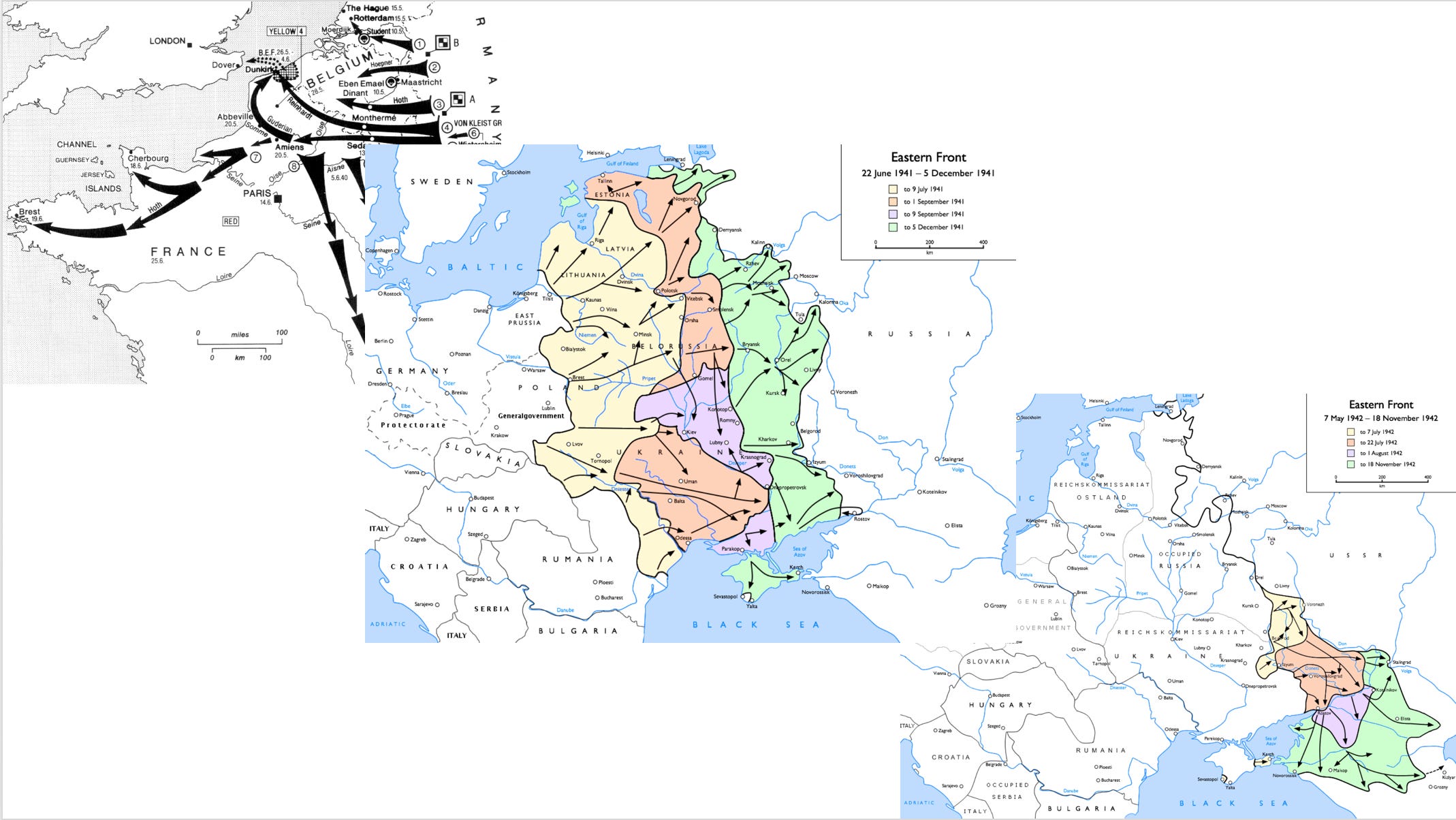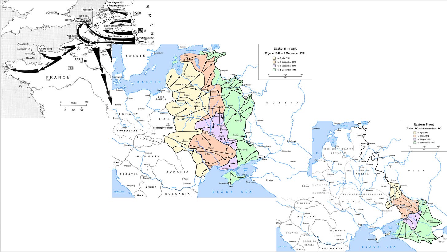 The crucial breakthrough of 1940, which opened the door to the assault on Soviet Union was won through two improvisations. The diplomatic improvisation was the Hitler-Stalin pact. The military improvisation was the “Manstein plan” with its daredevil blow through Belgium, across Northern France to the channel. It was a high-risk scheme that bubbled up the command chain. As Geyer argued, the caution and skepticism of the grand strategists in the German high command was overcome by the dangerous combination of an ideologue (Hitler) and a master technician (Manstein).