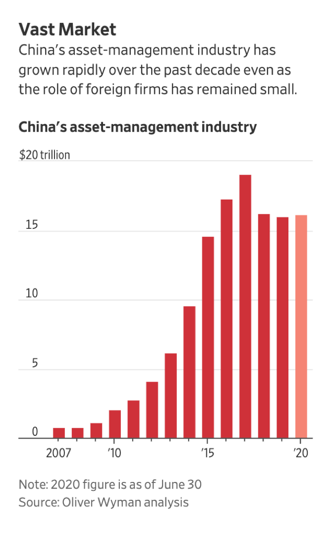 China’s asset management industry has grown to c. $18 trillion. But the foreign share has declined somewhat from 2 to closer to 1.5 percent. Big American asset managers would love to change that! They are no doubt waiting the new tune on China out of the Biden admin! But in the meantime Wall Street is China’s one remaining friend in the US. Check out this interesting WSJ piece by the team of: @Lingling_Wei @bobdavis187 @dawnmlim
