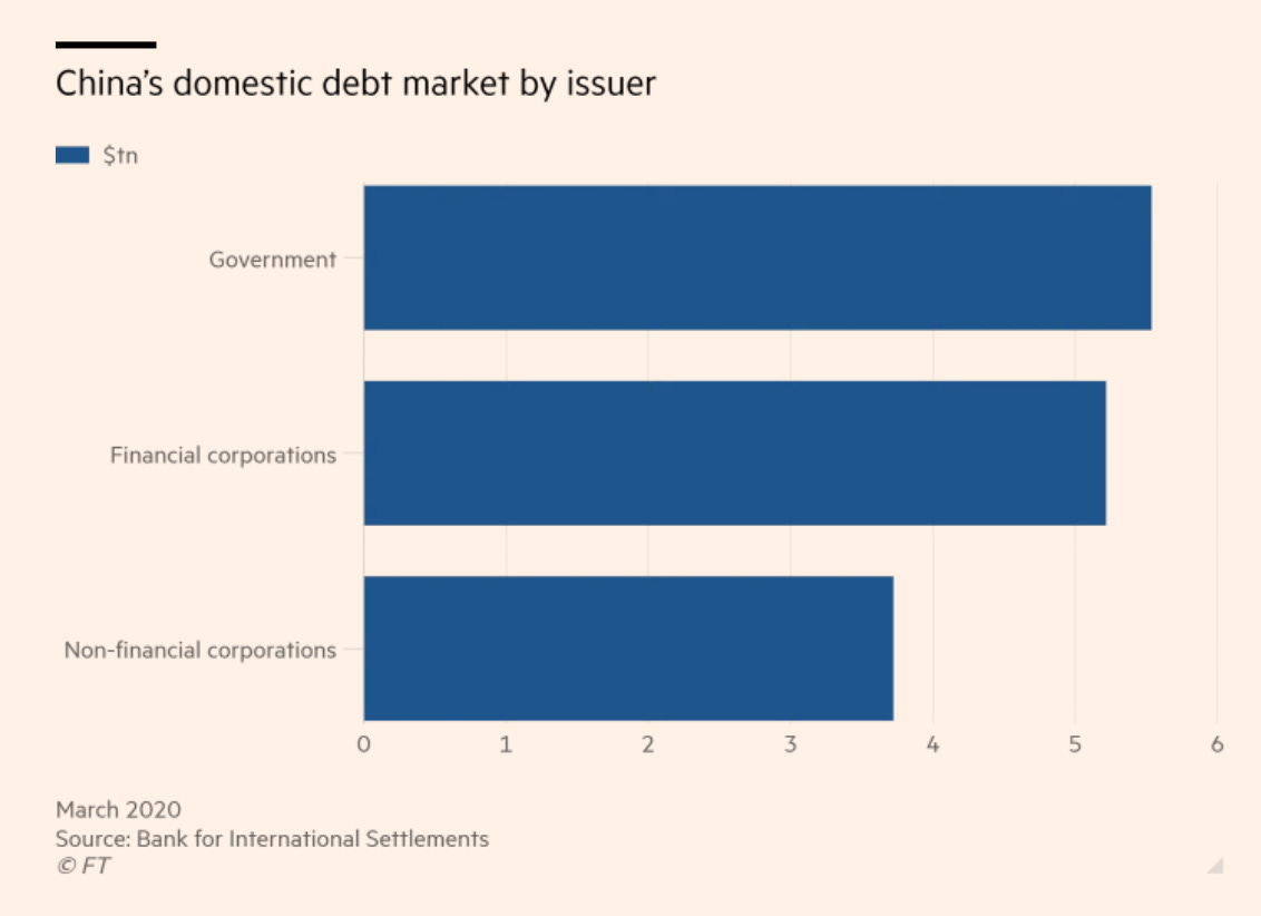 Foreign money goes overwhelmingly into the bonds of government and policy-banks. Foreign investors own c. 10% of China’s central government public debt. They steer well clear of the corporate bond market and this is where the risks lie.