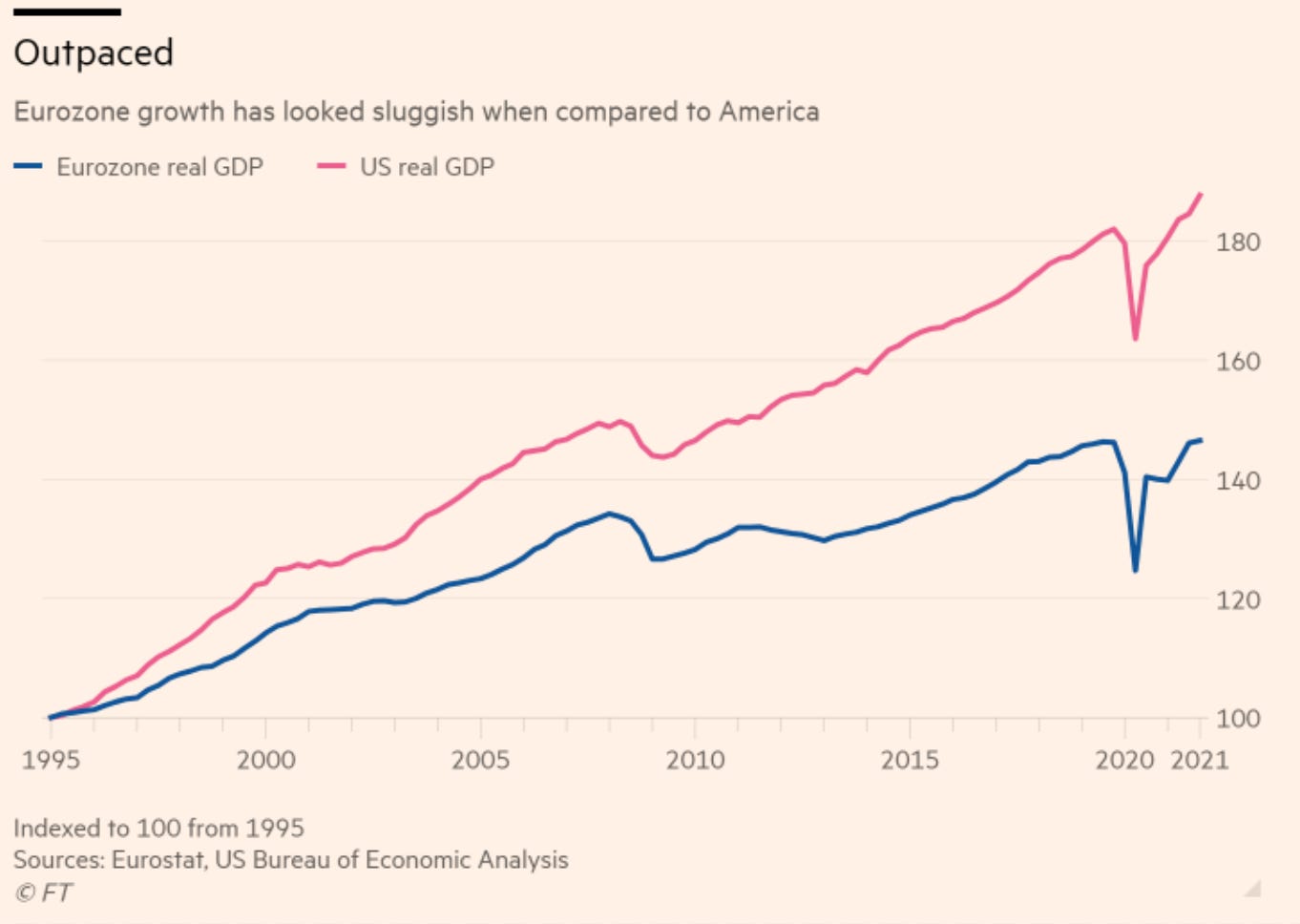 For these and other reasons, transformation in Europe has always been slow, painful, or both. But greater fiscal union, higher investment and a more balanced economy are the way for Europe to close the gap with the US, and finally reward investors for betting on the continent.The twin crises of pandemic and war have opened the door to substantial change.