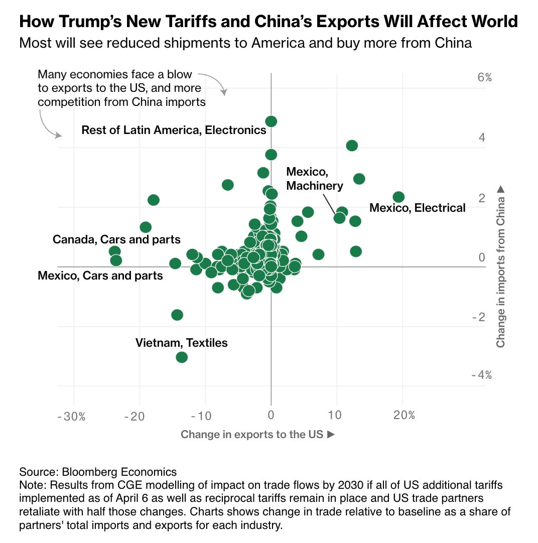 “The US shock is going to lead to a more severe China shock, which may very well lead other major players in the world to put tariffs up against China. That’s a scenario which I think is pretty certain,” says economist Richard Baldwin, who along with other trade experts was attending an improbably timed International Monetary Fund conference on “The State of Globalization” in Tokyo that closed Saturday. “Everyone was just shaking their heads,” he said of the mood at the venue. Baldwin argues that the saving grace for the global economy may be that the US only accounts for about 15% of global trade and that countries representing the remaining 85% including China are eager to maintain the system as it is. The rest of the world led by China and the European Union could make their own moves to liberalize trade, Baldwin says, even as the immediate response to Trump’s tariff blitz splits the world into “Team Comply” and “Team Defy.”