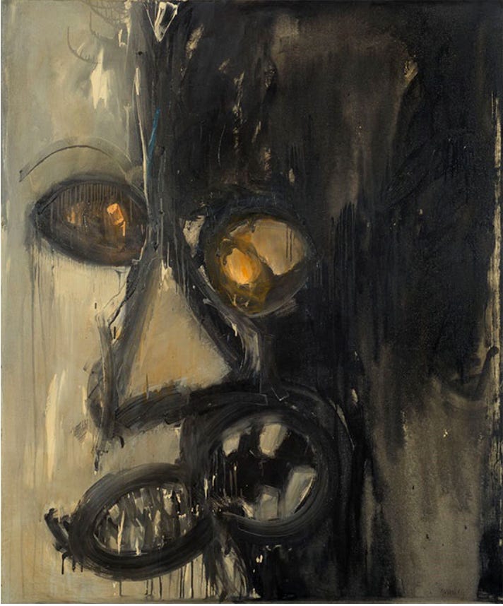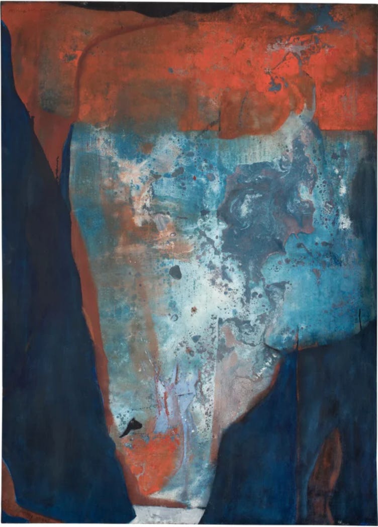 Merton Simpson, Confrontation (#1A). Source: the Johnson Collection. Simpson was an Abstract Expressionist painter, jazz musician and African art dealer from Charleston, part of the extraordinary Spiral Group. This is from Artsy: