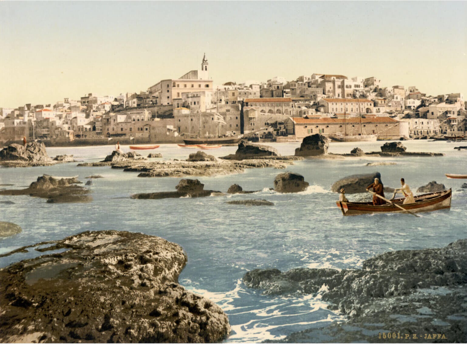Walid Khalidi’s Before their Diaspora does its historical and political work through photography — documenting Palestinian life thriving on the eve of the Nakba of 1948, inviting haunting questions about what happened. Here is an earlier serenity, from what is now Tel Aviv, courtesy of Wikimedia commons. JAFFA FROM THE SEA, HOLY LAND, CA. 1895: