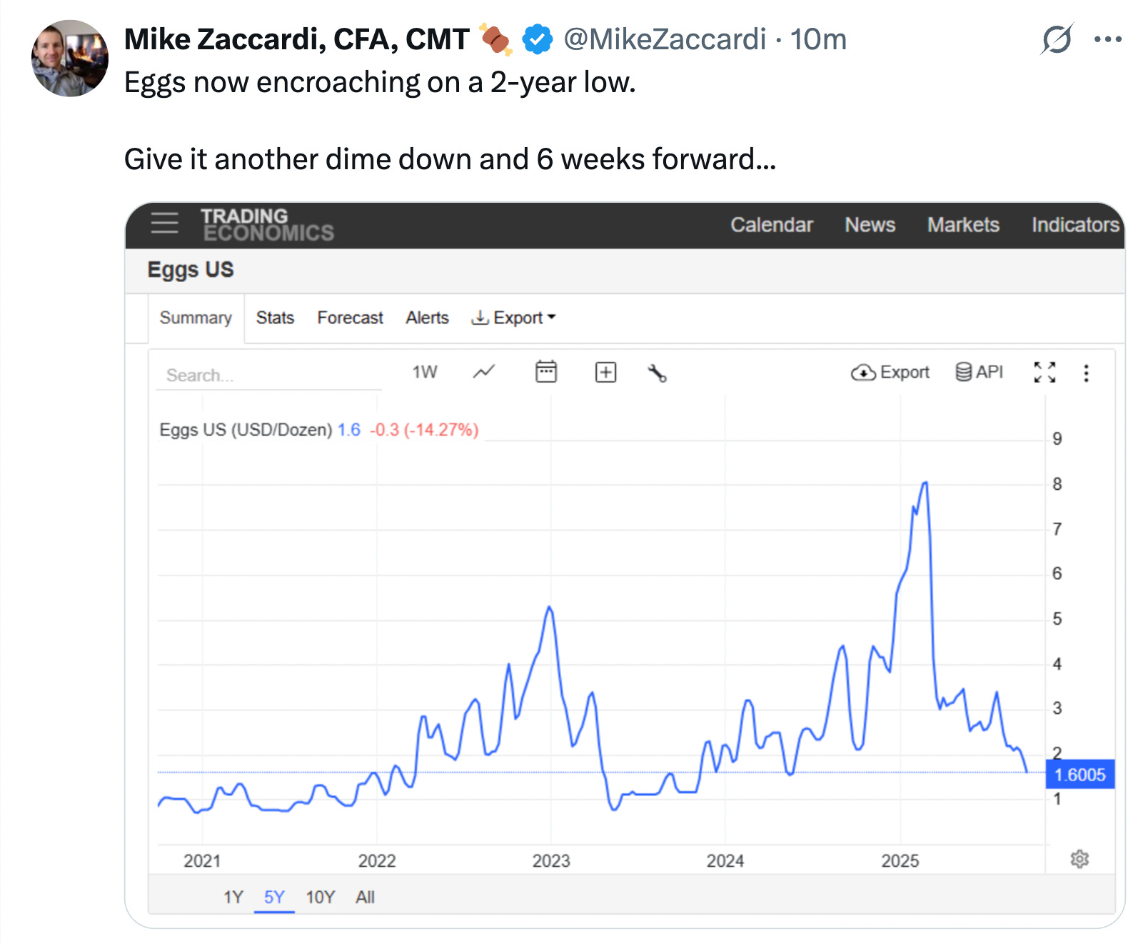 Well, here is some good news: Eggs are headed towards a two-year low.
