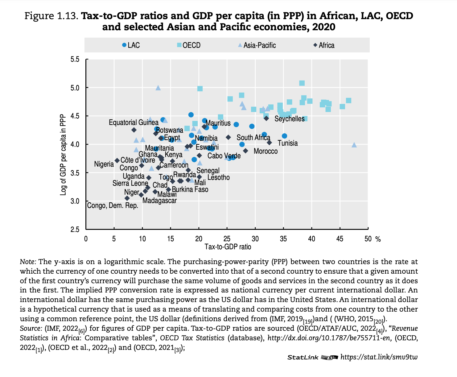 Of course, it is true that it is easier to build a tax state at higher levels of income. But comparative data show the range of performance across Africa at similar levels of development.