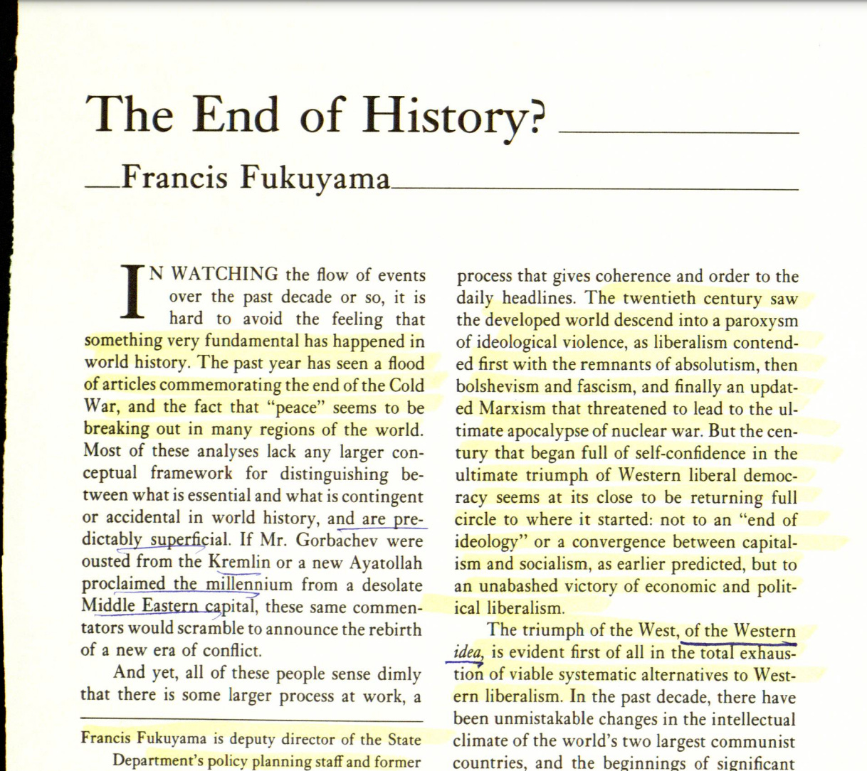 Margaret Thatcher’s reading of Fukuyama’s End of History Essay