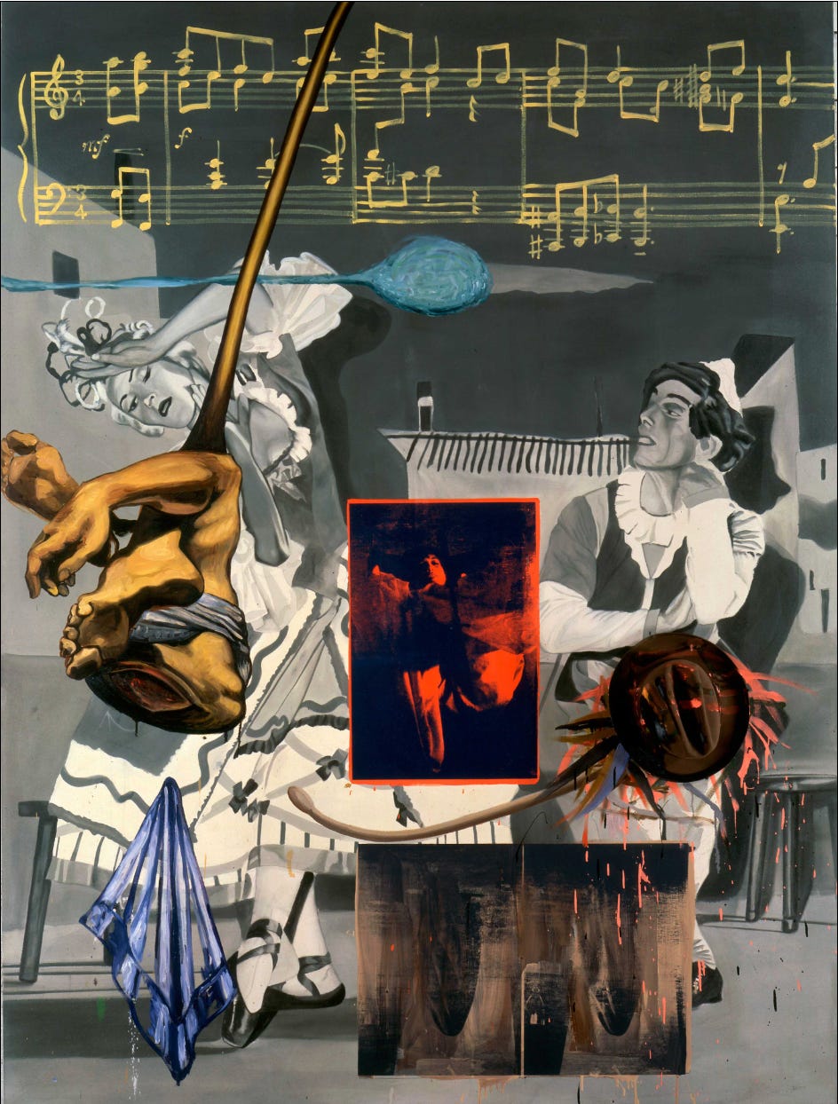 FOOLING WITH YOUR HAIR, 1985. OIL ON CANVAS. 88-1/2 X 180-1/4 INCHES. IMAGE COURTESY OF DAVID SALLE. Source: Meer