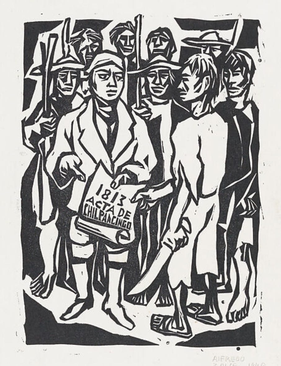 Alfredo Zalce, 'Acta de Chilpancingo', group of men discussing the 1813 Act of Chipalcingo declaring Mexico independent of Spain (1940).