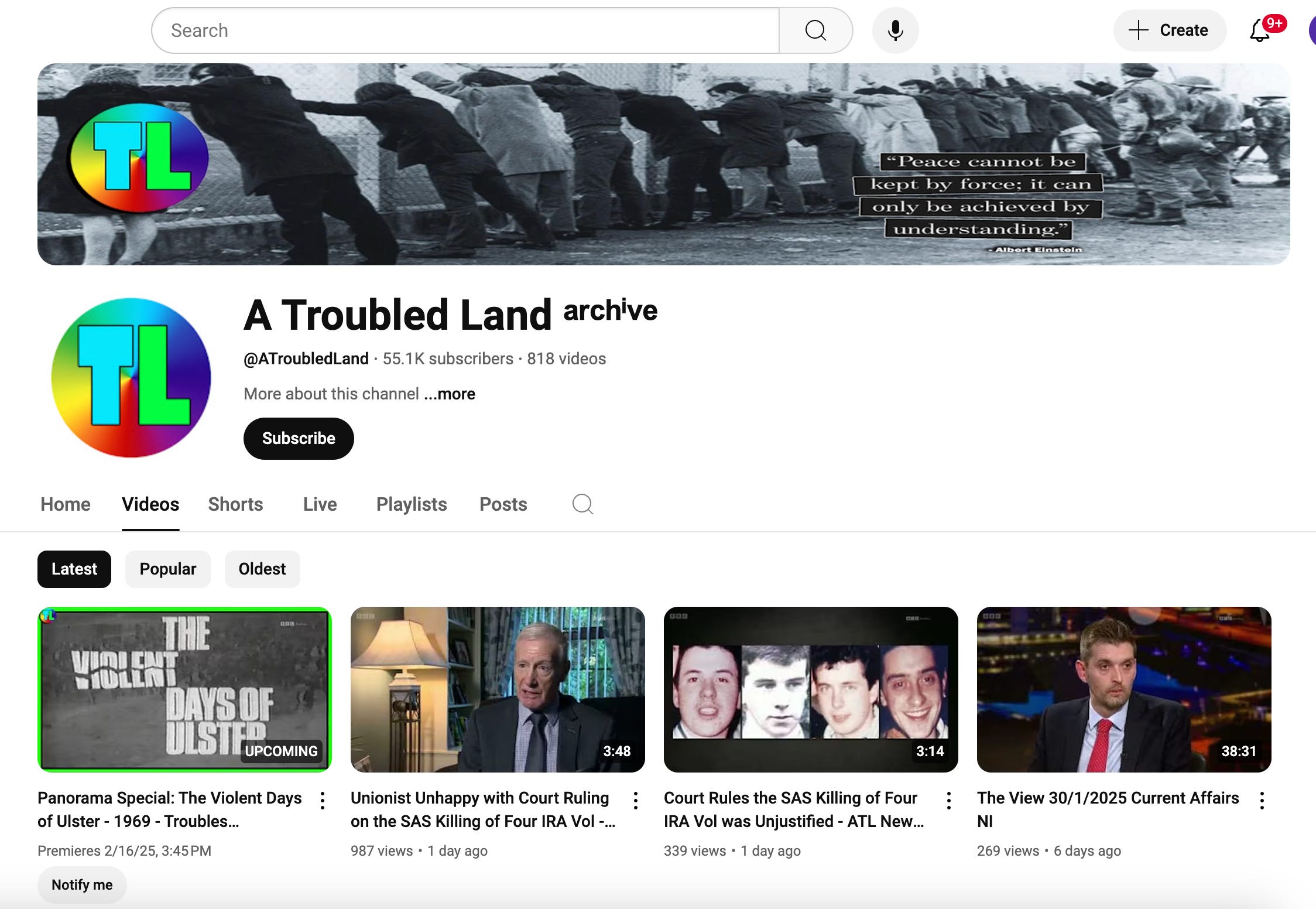 The collection of videos about the “Troubles”, on the YouTube Channel “A Troubled Land”, is really quite extraordinary.