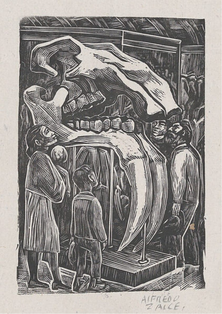 Alfredo Zalce (Mexican), A group of people looking at animal bones in a natural history museum (ca. 1940).