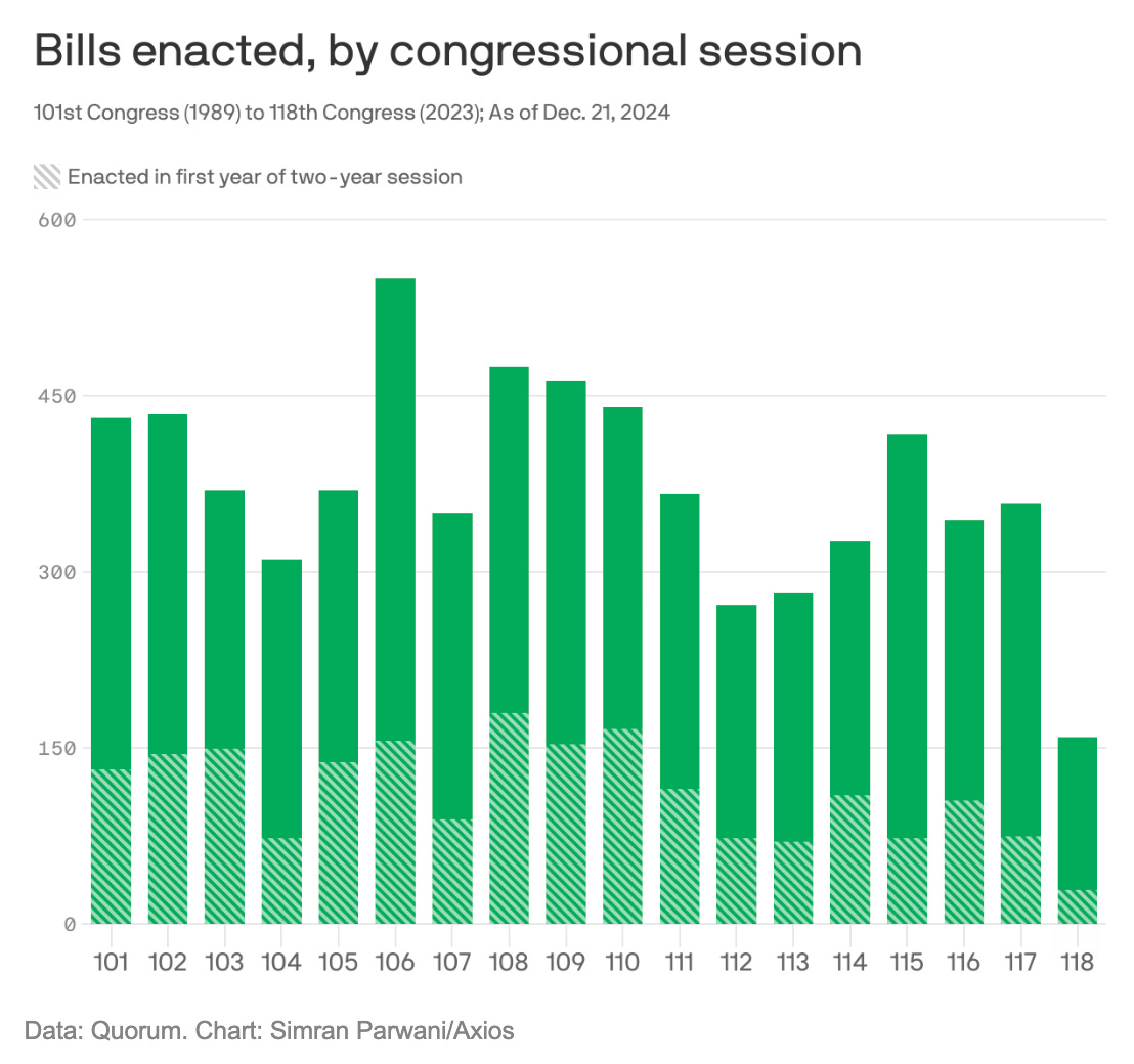 The outgoing US Congress was the least productive of legislation of any in the last forty years.