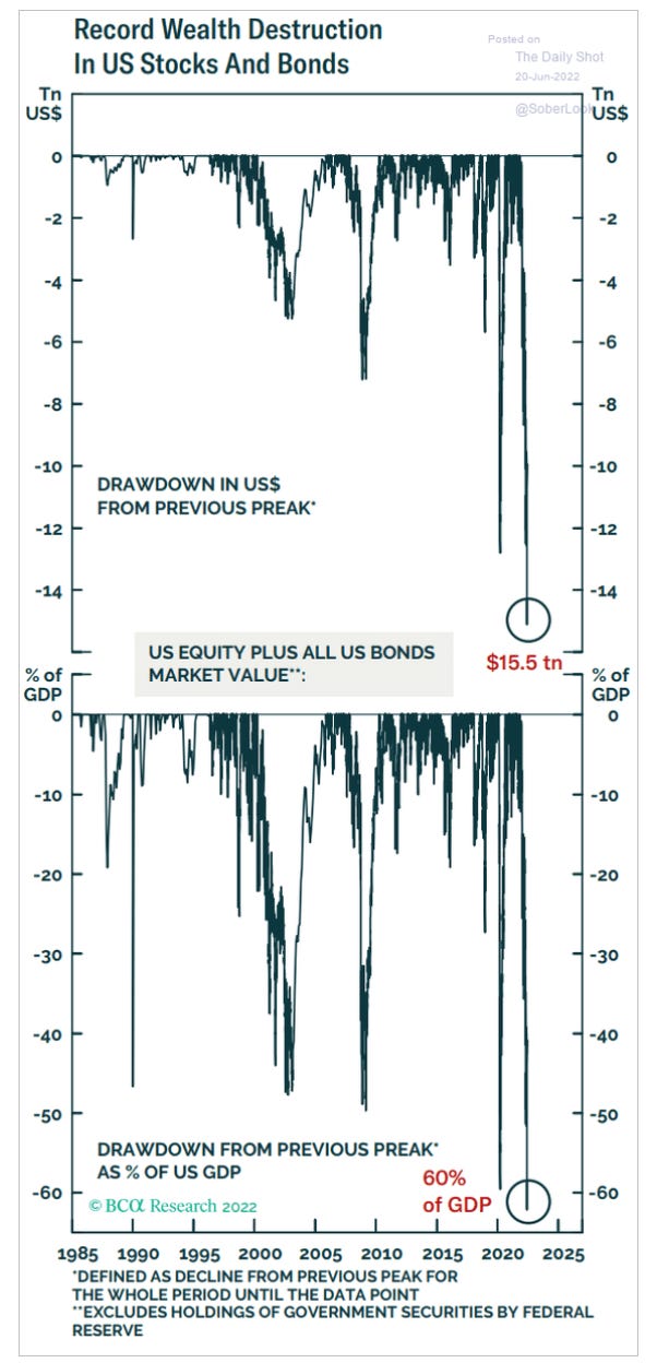 The sell off in US bond and stock markets in recent months has resulted in the most dramatic write down in balance sheet values in half a century - $!5.5 trillion, 60% of 2019 GDP.