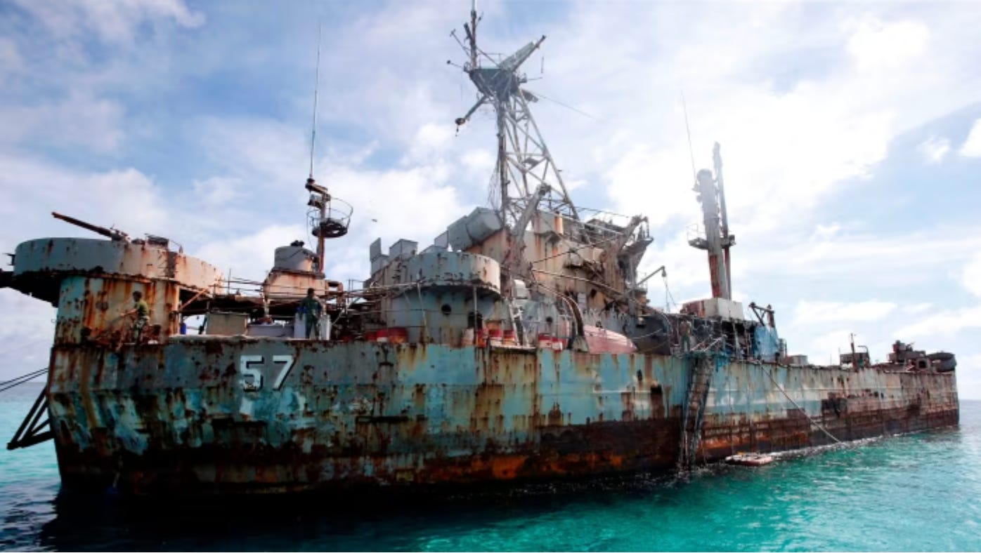 The Sierra Madre, a grounded ship, acts as a Philippine military installation on the Second Thomas Shoal. China had hoped the vessel would fall back into the sea.