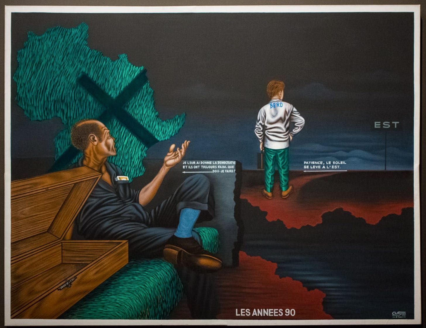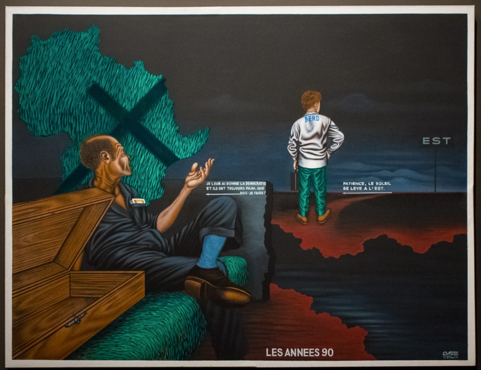 Fascinating image by Congolese artist Chéri Samba, Les Annees 90 Patience, Le Soleil se leve a L’est Source: Seattle Art Museum