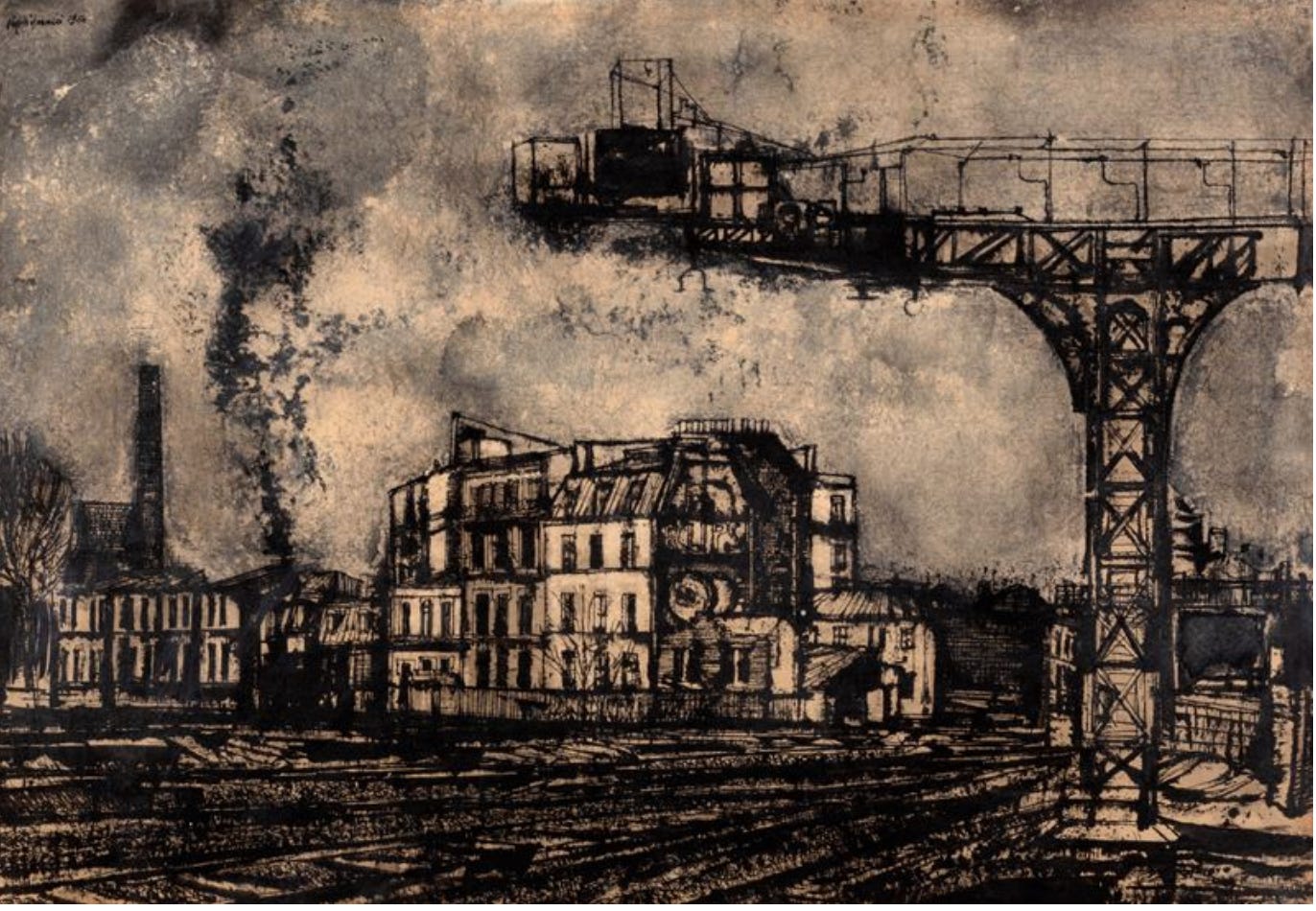 RENZO VESPIGNANI, (Rome 1924 - 2001), Suburb with factory , 1950 Source: Finarte.it