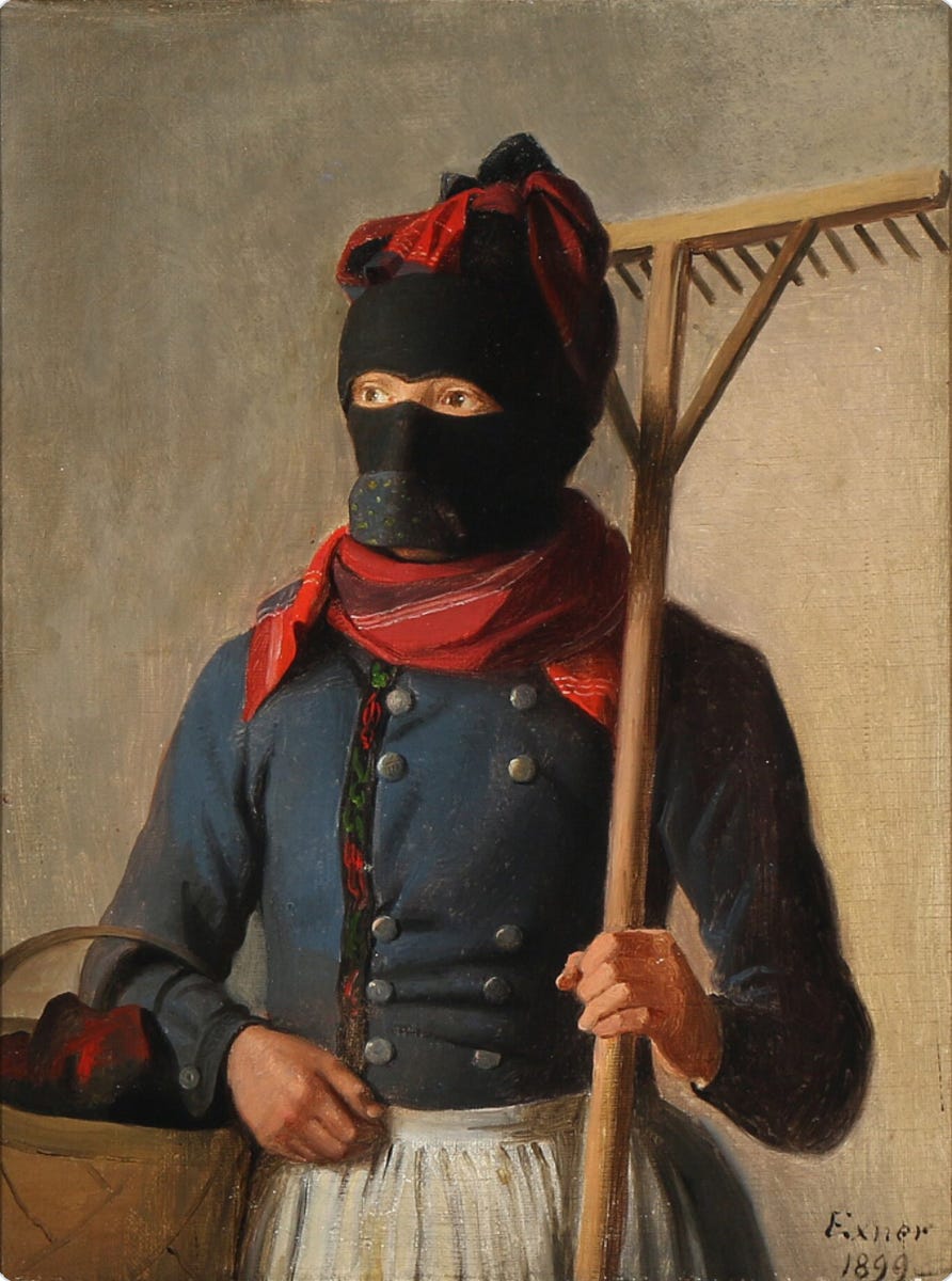 Julius Exner, A girl from Fanø, Denmark, in traditional dress and mask for the harvest.1899, oil on canvas, 31 cm (12.2 in) x 23 cm (9 in), Private collection h/t @JesseMLocker