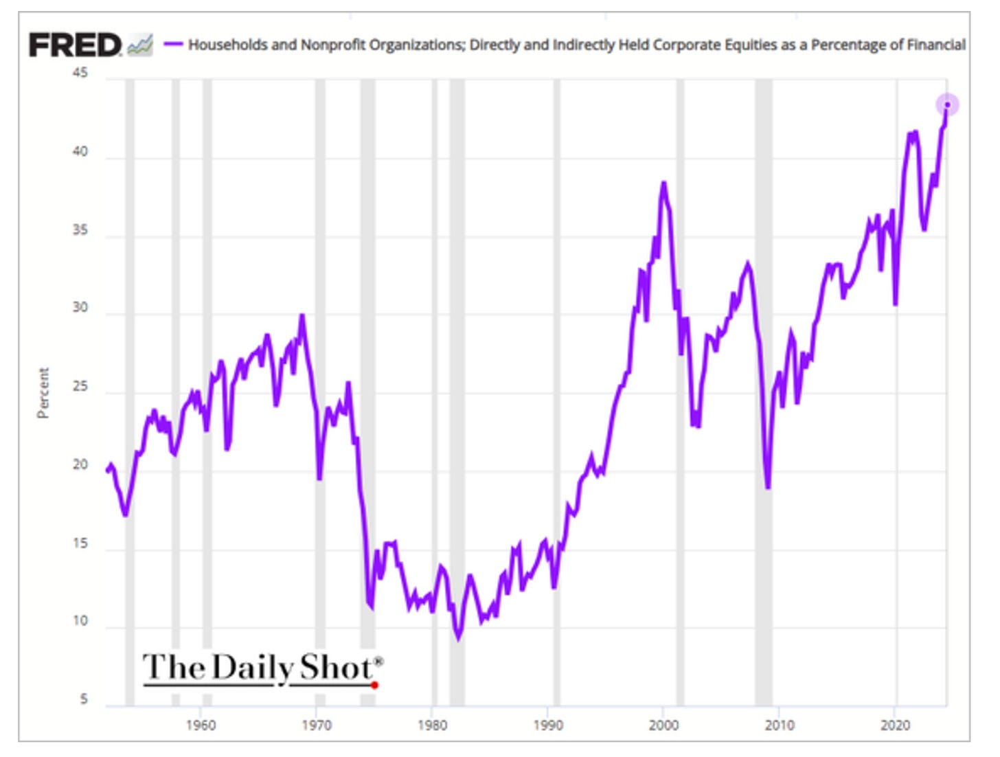 US household exposure to the equity markets - as a share of financial assets held - is at an all-time high.