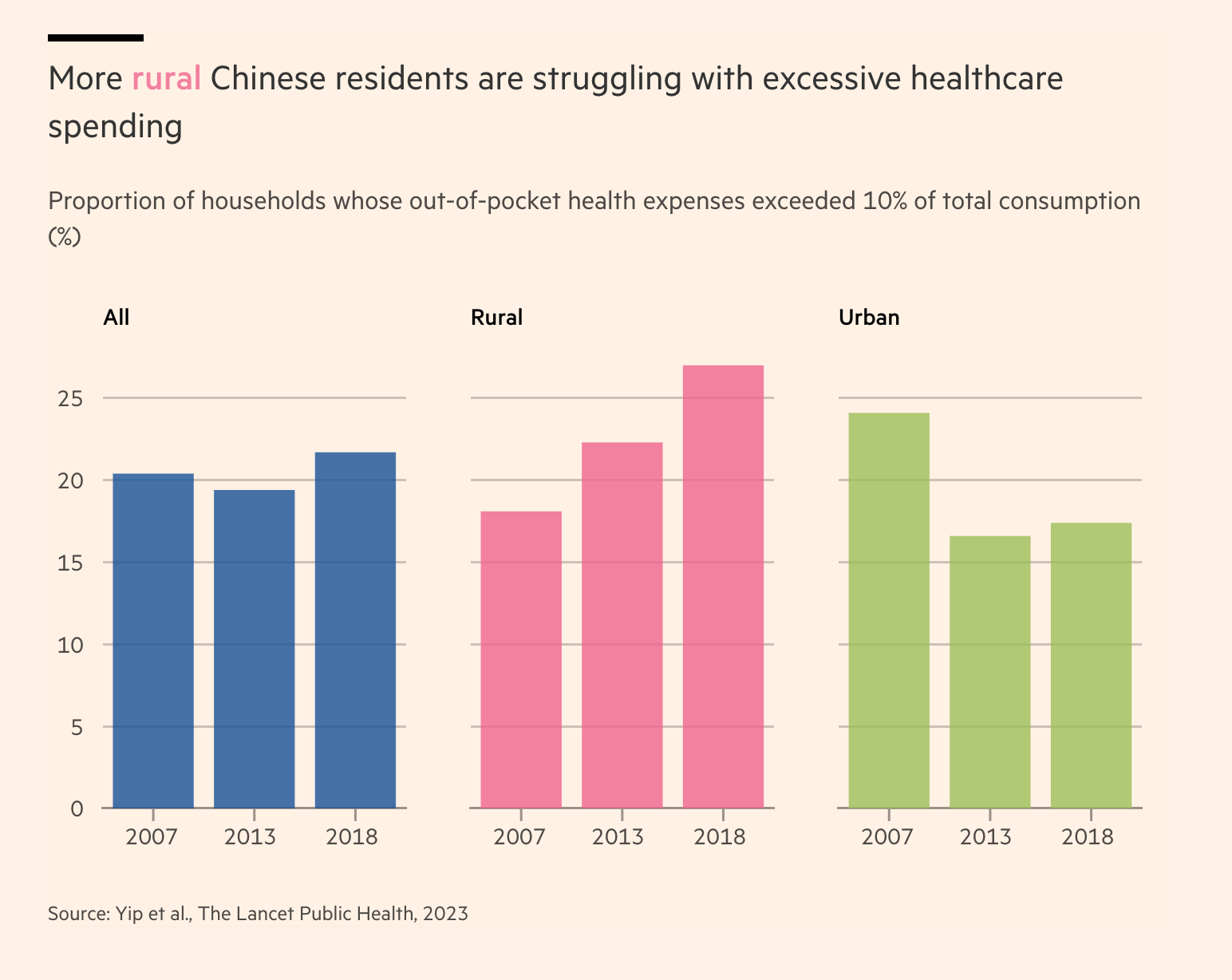 Catastrophic health care costs threaten one quarter of all rural households in China.
