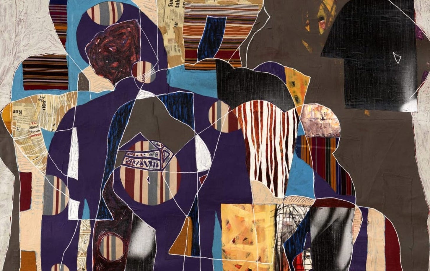 Collin Sekajugo, The Generator (Detail), 2017. Fabric, barkcloth, photo print material embroidery on canvas