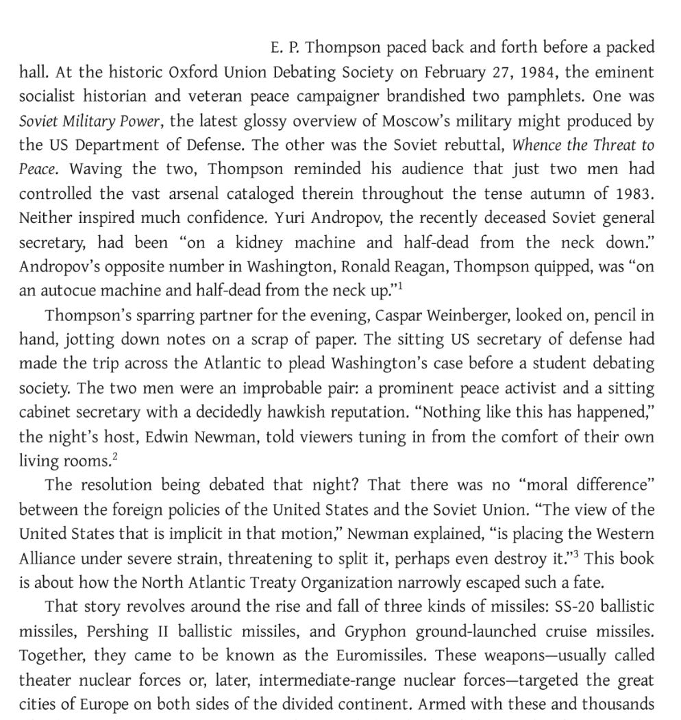This is from Euromissiles The Nuclear Weapons That Nearly Destroyed NATO BY SUSAN COLBOURN Cornell University Press. Adding this to my xmas list.