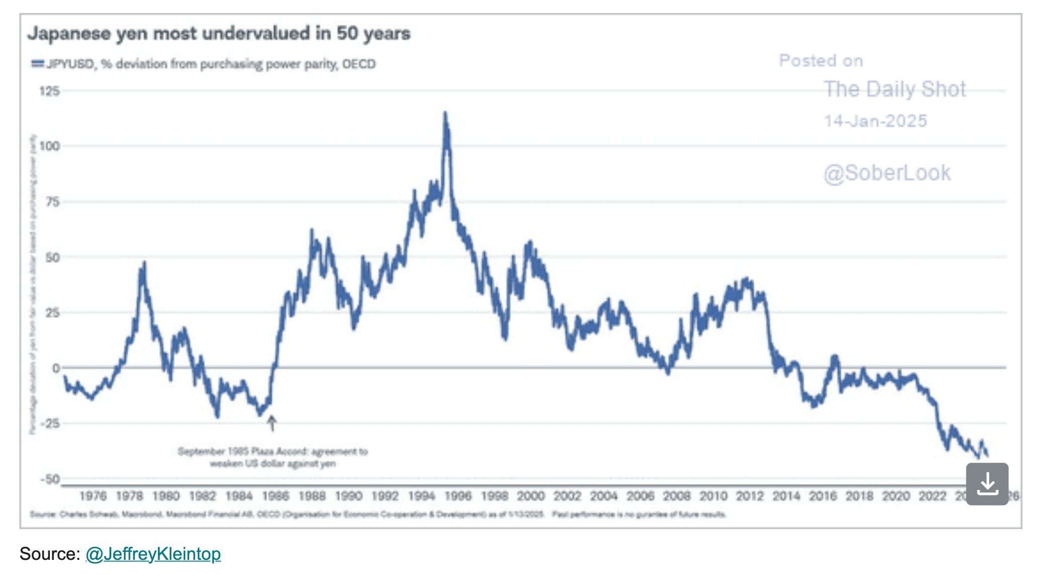 By PPP standards, the Japanese yen is increasingly undervalued.