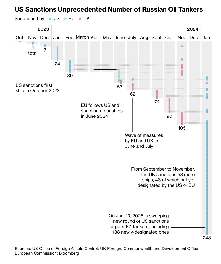 The Biden administration signed off with a dramatic tightening of sanctions against Russia’s dark fleet.