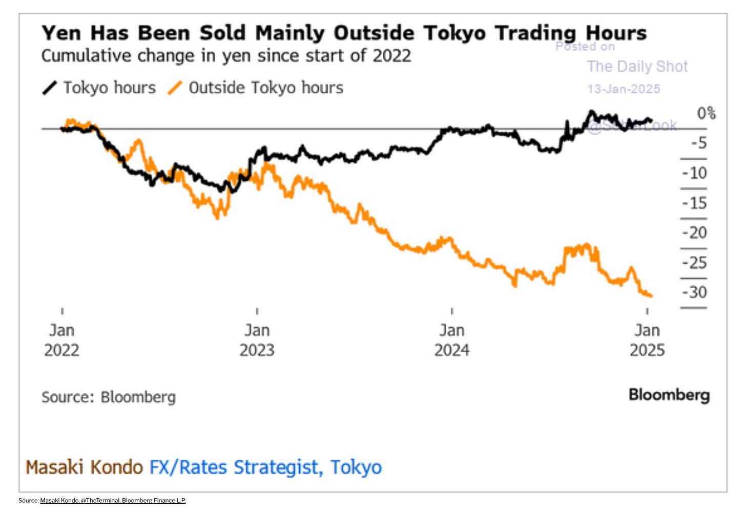 And most of the selling of Yen takes place outside Tokyo trading hours.